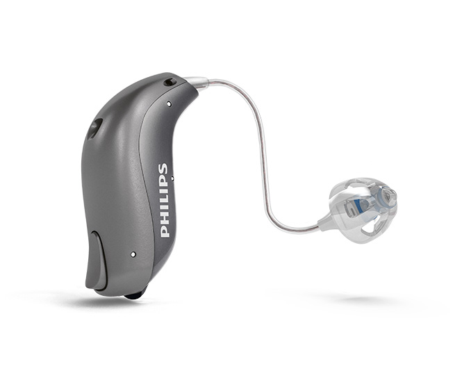 这款外置受话器耳背式助听器配有可充电锂离子电池,3个小时即可充满电,电量足够一天所需(18小时)。这款助听器可搭配不同功率的受话器,适用于轻度至重度的听力损失。
