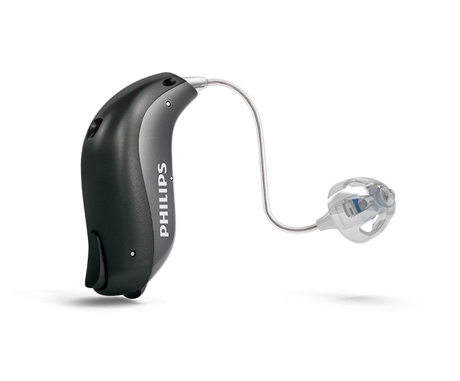 这款外置受话器耳背式助听器具有电感功能和双功能按钮。这款助听器可搭配不同功率的受话器,适用于轻度至重度听力损失。